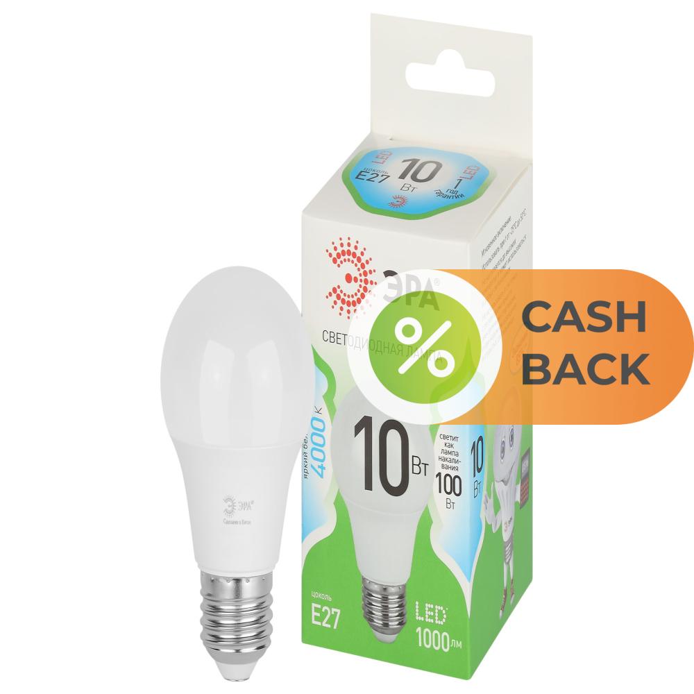 Лампочка светодиодная ЭРА LED A60-10W-840-E27 GL