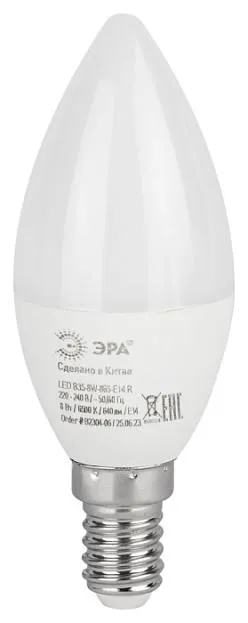 Лампочка светодиодная ЭРА LED B35-8W-865-E14 R