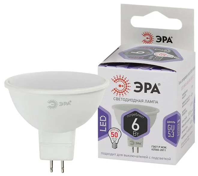 Лампочка светодиодная ЭРА LED MR16-6W-860-GU5.3