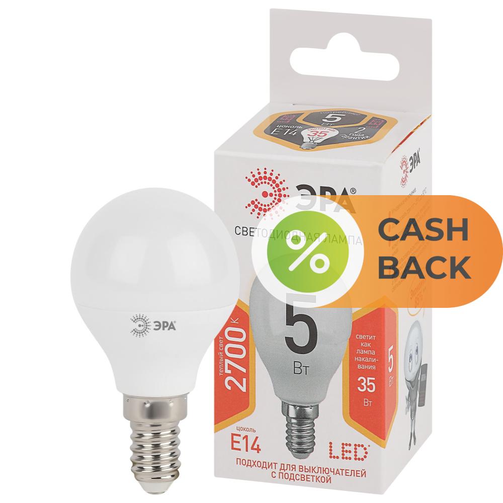 Лампочка светодиодная ЭРА LED P45-5W-827-E14