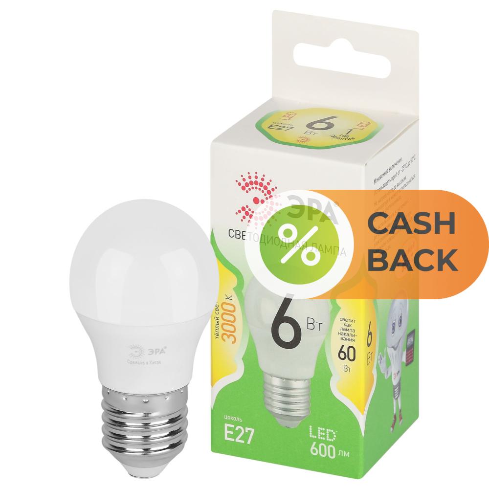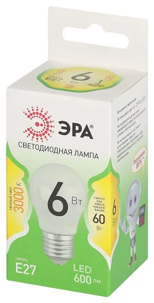 Лампочка светодиодная ЭРА LED P45-6W-830-E27 GL