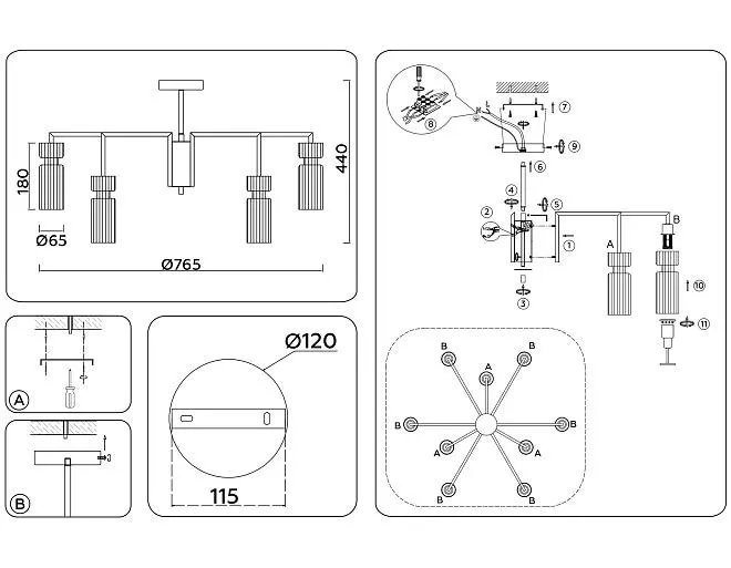 | Количество плафонов | 9 |