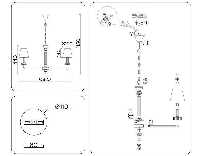 | Высота люстры с тросом, мм | 1130 |