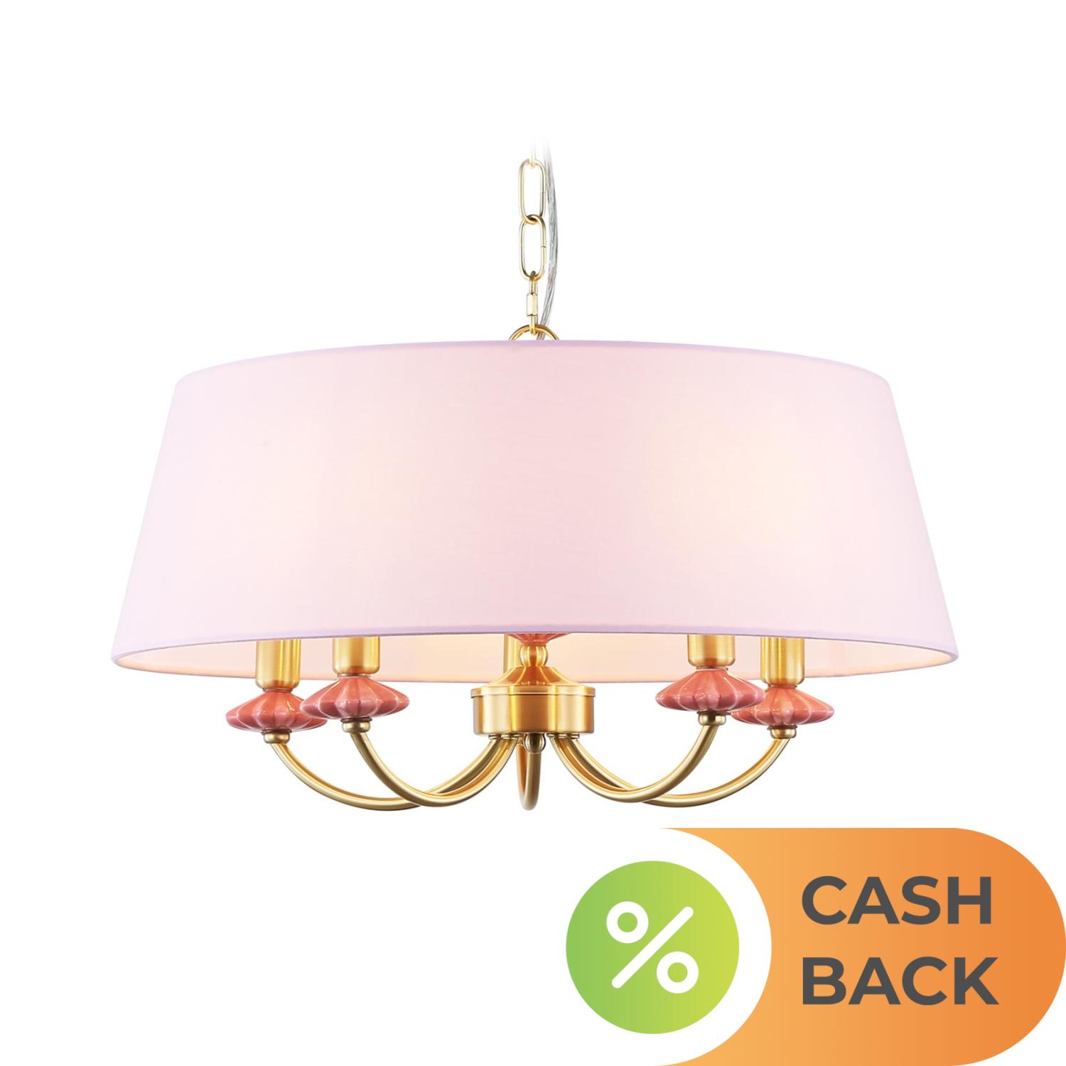 Купить LH75021/5 GD/PI золото/розовый E14/5 max 40W D550*730 Подвесная люстра с абажуром и декором из керамики в интернет-магазине ЛюстраНаДом со скидкой и кешбеком. Работаем с НДС, доставляем на дом и в ПВЗ. Продажа Ambrella light LH75021 LH осуществляется с доставкой по Москве и регионам России.