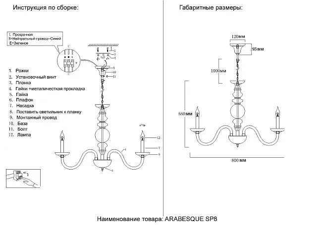 | Особенности модели | Серия светильников Arabesque в неоклассическом стиле восхищает своей утончённостью и изяществом. В ассортименте представлены бра и две великолепные люстры разных размеров. Они выполнены из металла и стекла, что создаёт удивительный дуэт прочности и лёгкости. Arabesque станет украшением в интерьере и продемонстрирует вкус и индивидуальность своего обладателя. |