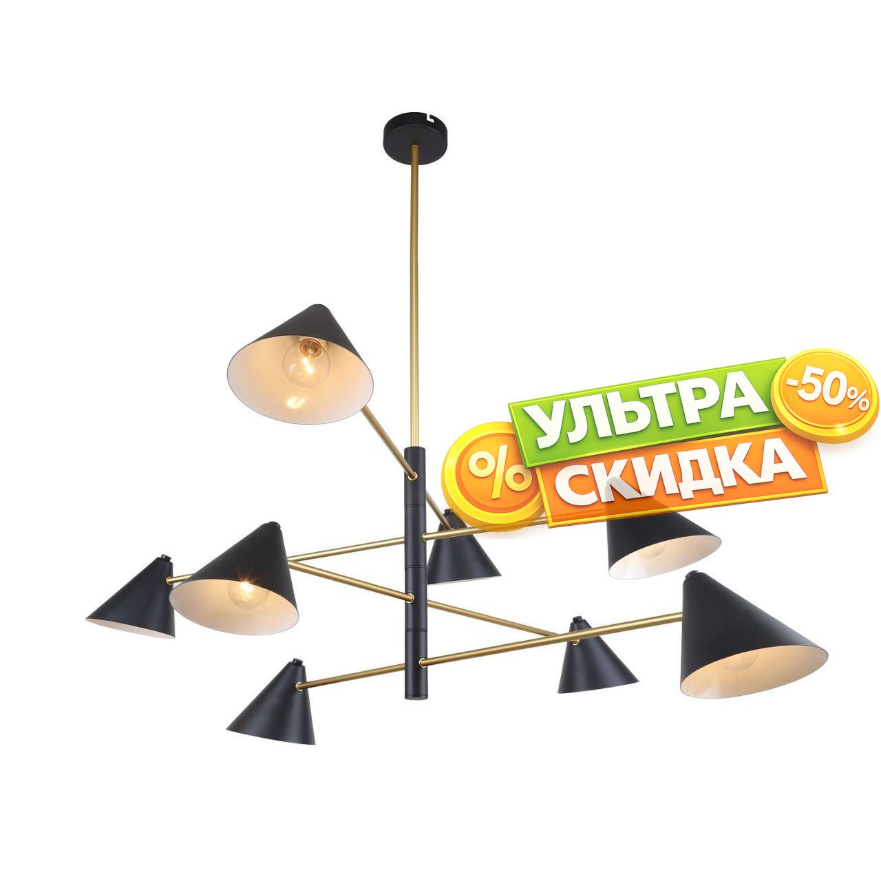 | Описание светильника | Металлический каркас светильника сочетает два цвета черный и золото, черные плафоны конусообразной формы, регулируемая высота, сменные лампы. |