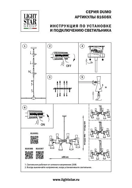 Купить Люстра на штанге Lightstar 816086 DUMO в интернет-магазине ЛюстраНаДом со скидкой и кешбеком. Работаем с НДС, доставляем на дом и в ПВЗ. Продажа Lightstar 816086 Dumo осуществляется с доставкой по Москве и регионам России.