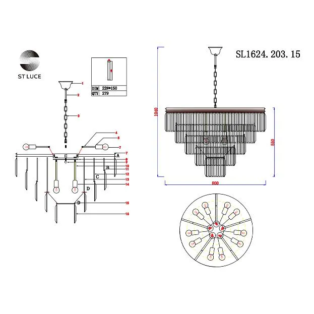 Купить Люстра подвесная ST LUCE SL1624.203.15 Ercolano в интернет-магазине ЛюстраНаДом со скидкой и кешбеком. Работаем с НДС, доставляем на дом и в ПВЗ. Продажа ST Luce SL1624.203.15 Ercolano осуществляется с доставкой по Москве и регионам России.