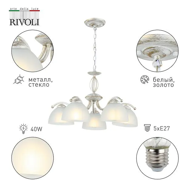 Купить Люстра Rivoli Valerie 9169-305 5 х Е27 40 Вт классика в интернет-магазине ЛюстраНаДом со скидкой и кешбеком. Работаем с НДС, доставляем на дом и в ПВЗ. Продажа Rivoli 9169-305 Valerie осуществляется с доставкой по Москве и регионам России бесплатно от 5000 р.