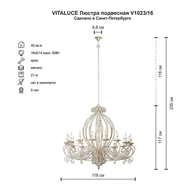 Купить Люстра Vitaluce V1023/16 в интернет-магазине ЛюстраНаДом со скидкой и кешбеком. Работаем с НДС, доставляем на дом и в ПВЗ. Продажа Vitaluce V1023/16 V1023 осуществляется с доставкой по Москве и регионам России.