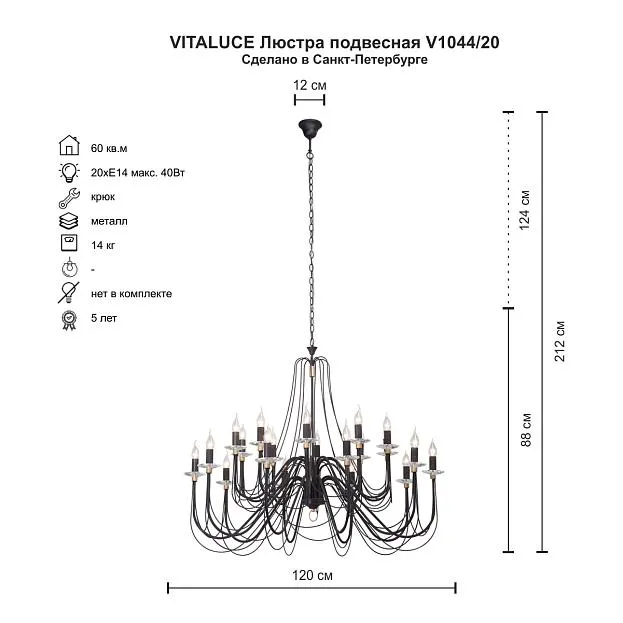 Купить Люстра Vitaluce V1044/20 в интернет-магазине ЛюстраНаДом со скидкой и кешбеком. Работаем с НДС, доставляем на дом и в ПВЗ. Продажа Vitaluce V1044/20 V1044 осуществляется с доставкой по Москве и регионам России.