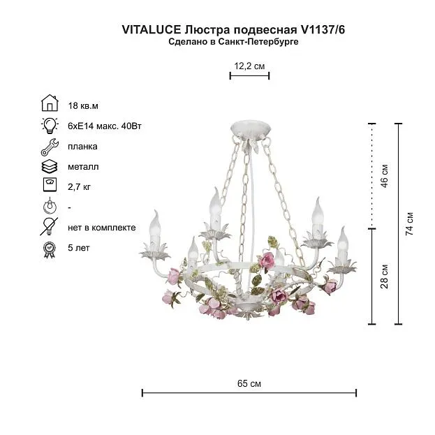 Купить Люстра Vitaluce V1137/6 в интернет-магазине ЛюстраНаДом со скидкой и кешбеком. Работаем с НДС, доставляем на дом и в ПВЗ. Продажа Vitaluce V1137/6 V1137 осуществляется с доставкой по Москве и регионам России.