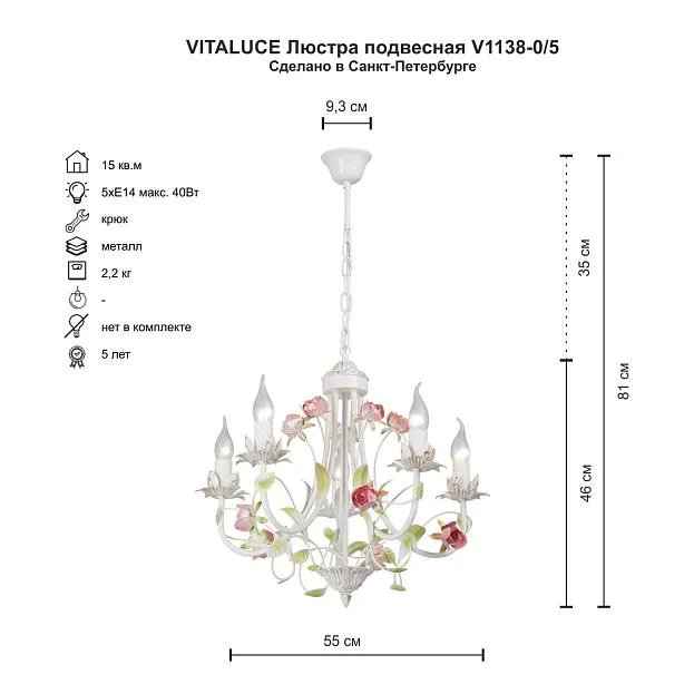 Купить Подвесная люстра Vitaluce V1138-0/5 в интернет-магазине ЛюстраНаДом со скидкой и кешбеком. Работаем с НДС, доставляем на дом и в ПВЗ. Продажа Vitaluce V1138-0/5 V1138 осуществляется с доставкой по Москве и регионам России.