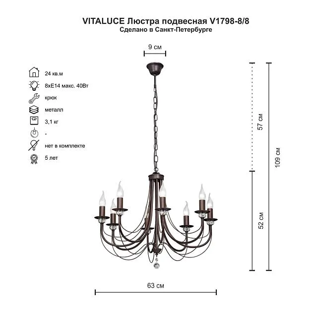 Купить Люстра Vitaluce V1798-8/8, 8хЕ14 макс. 60Вт в интернет-магазине ЛюстраНаДом со скидкой и кешбеком. Работаем с НДС, доставляем на дом и в ПВЗ. Продажа Vitaluce V1798-8/8 V1798 осуществляется с доставкой по Москве и регионам России.