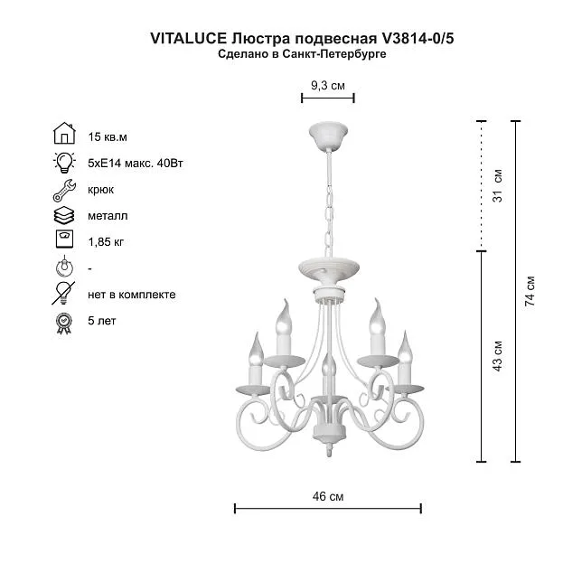 Купить Подвесная люстра Vitaluce V3814-0/5 в интернет-магазине ЛюстраНаДом со скидкой и кешбеком. Работаем с НДС, доставляем на дом и в ПВЗ. Продажа Vitaluce V3814-0/5 V3814 осуществляется с доставкой по Москве и регионам России.