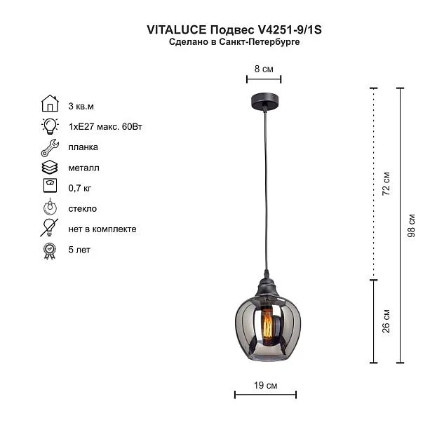 Купить Подвес Vitaluce V4251-9/1S в интернет-магазине ЛюстраНаДом со скидкой и кешбеком. Работаем с НДС, доставляем на дом и в ПВЗ. Продажа Vitaluce V4251-9/1S V4251 осуществляется с доставкой по Москве и регионам России.