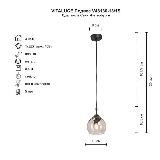 Купить Подвесной светильник Vitaluce V48130-13/1S в интернет-магазине ЛюстраНаДом со скидкой и кешбеком. Работаем с НДС, доставляем на дом и в ПВЗ. Продажа Vitaluce V48130-13/1S V48130 осуществляется с доставкой по Москве и регионам России.