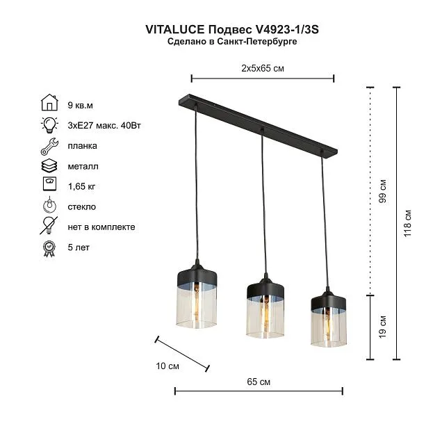 Купить Подвесной светильник Vitaluce V4923-1/3S в интернет-магазине ЛюстраНаДом со скидкой и кешбеком. Работаем с НДС, доставляем на дом и в ПВЗ. Продажа Vitaluce V4923-1/3S V4923 осуществляется с доставкой по Москве и регионам России.