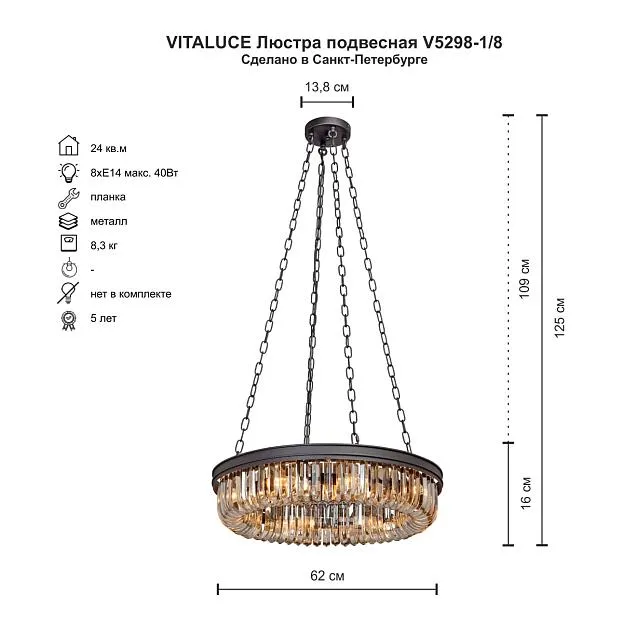 Купить Люстра Vitaluce V5298-1/8 хрусталь в интернет-магазине ЛюстраНаДом со скидкой и кешбеком. Работаем с НДС, доставляем на дом и в ПВЗ. Продажа Vitaluce V5298-1/8 V5298 осуществляется с доставкой по Москве и регионам России.