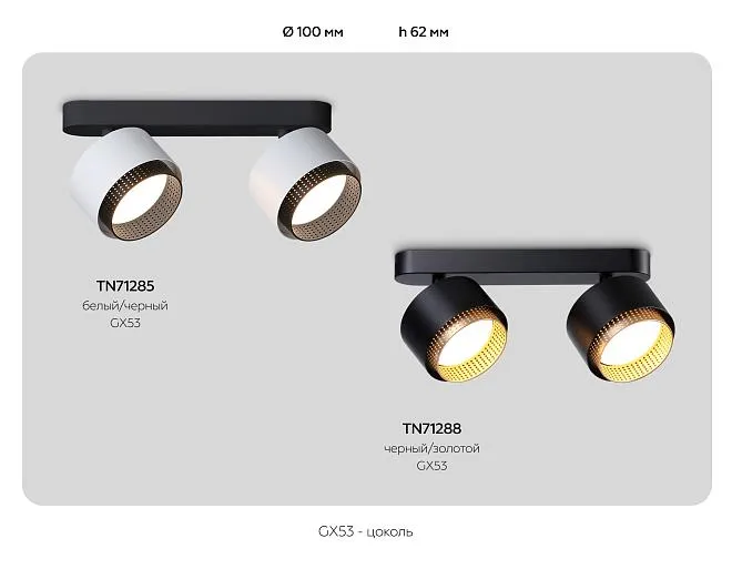 | Рекомендуемый тип лампы | GX53 LED max 12 Вт |