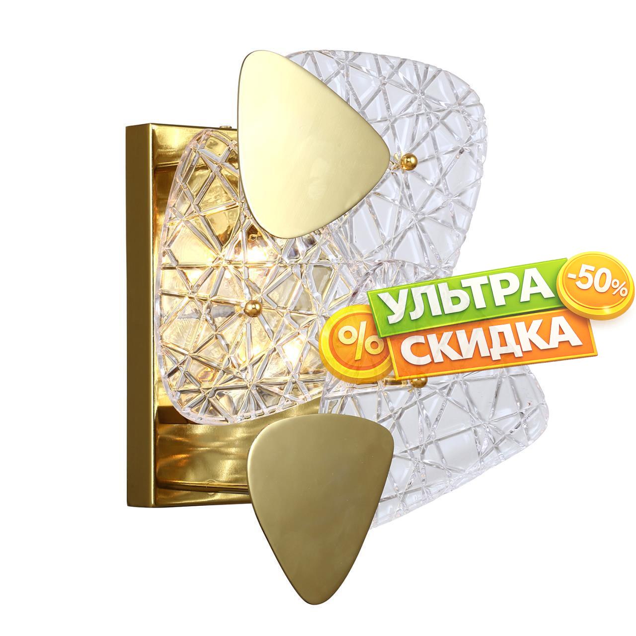 | Описание светильника | бра, каркас в цвете золото, накладки из металла и прозрачного стекла кракле с "ледяными" узорами, сменная лампа G9. |