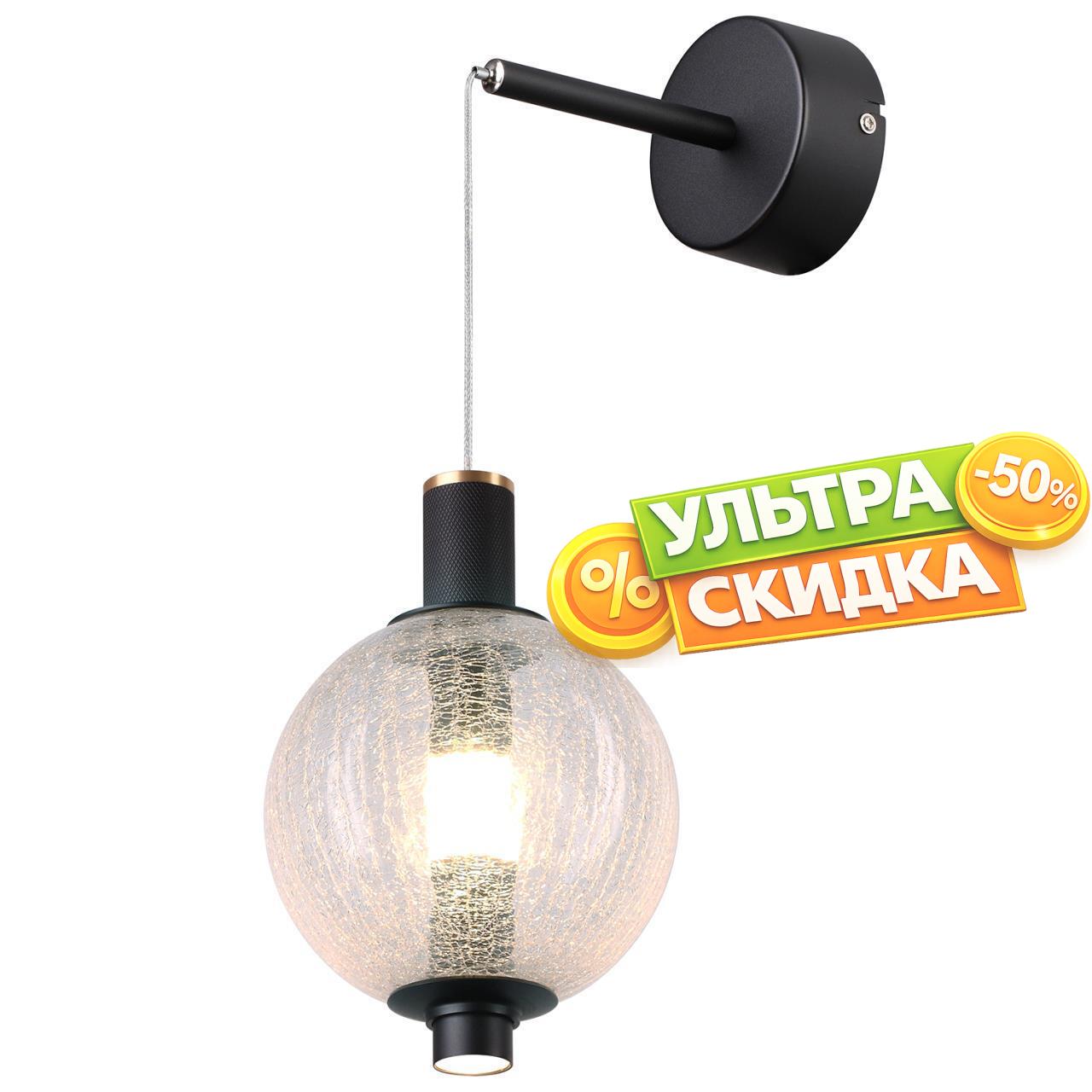 | Описание светильника | бра с выдувным плафоном кракле, два источника света, регулируемая высота, каркас в матовом черном цвете с элементами в цвете латунь. |