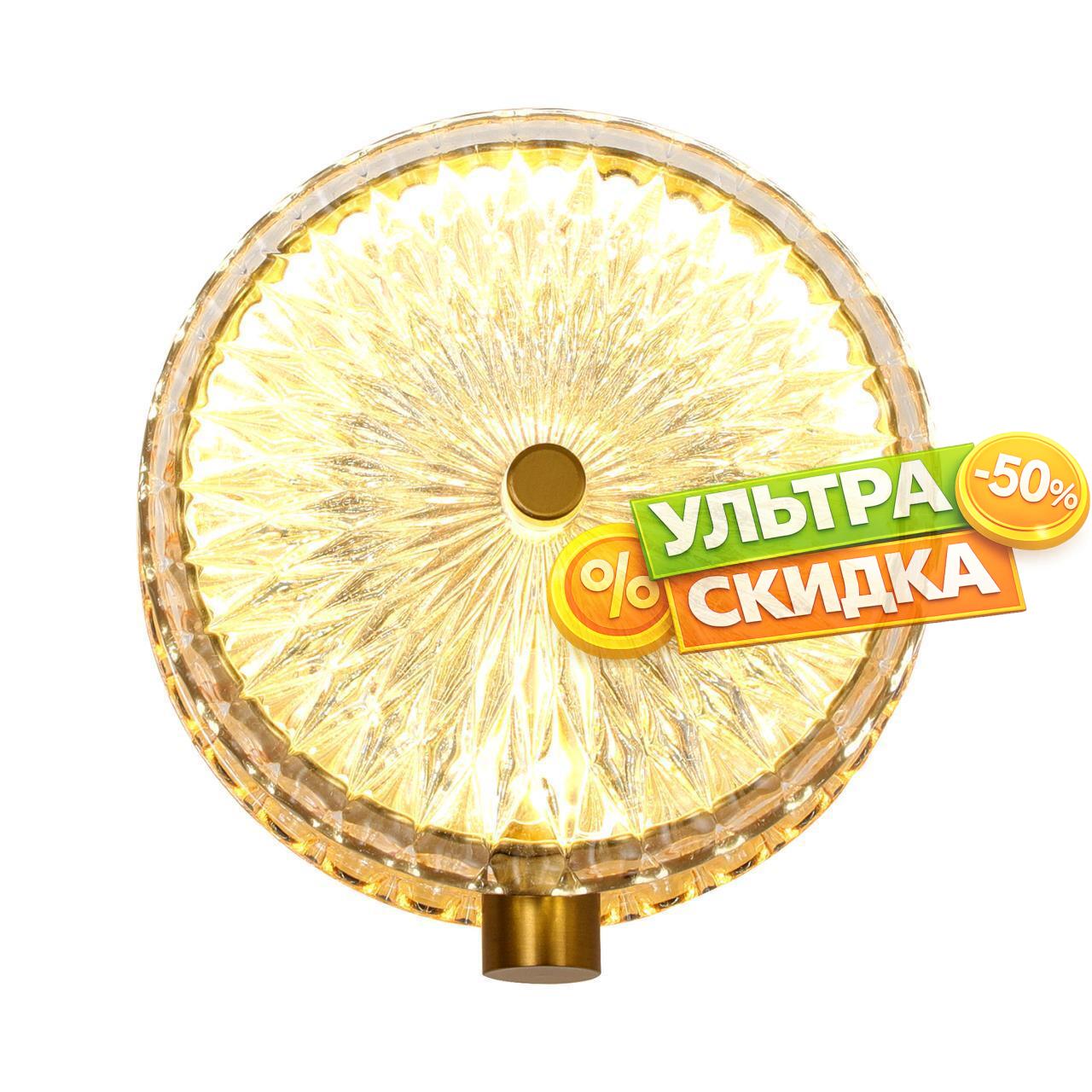 | Описание светильника | Каркас черного цвета, плафон состоит из двух узорных стеклянных дисков прозрачного и янтарного цвета, внутри которых расположен LEDмодуль, регулируемая высота. |