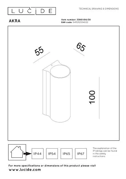 Купить Настенный светильник Lucide AKRA 33801/06/30 в интернет-магазине ЛюстраНаДом со скидкой и кешбеком. Работаем с НДС, доставляем на дом и в ПВЗ. Продажа Lucide 33801/06/30 AKRA осуществляется с доставкой по Москве и регионам России бесплатно от 5000 р.