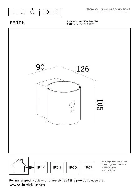 Купить Настенный светильник Lucide PERTH 15817/01/30 в интернет-магазине ЛюстраНаДом со скидкой и кешбеком. Работаем с НДС, доставляем на дом и в ПВЗ. Продажа Lucide 15817/01/30 PERTH осуществляется с доставкой по Москве и регионам России бесплатно от 5000 р.