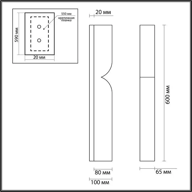 | Тип светильника По способу крепления | планка |