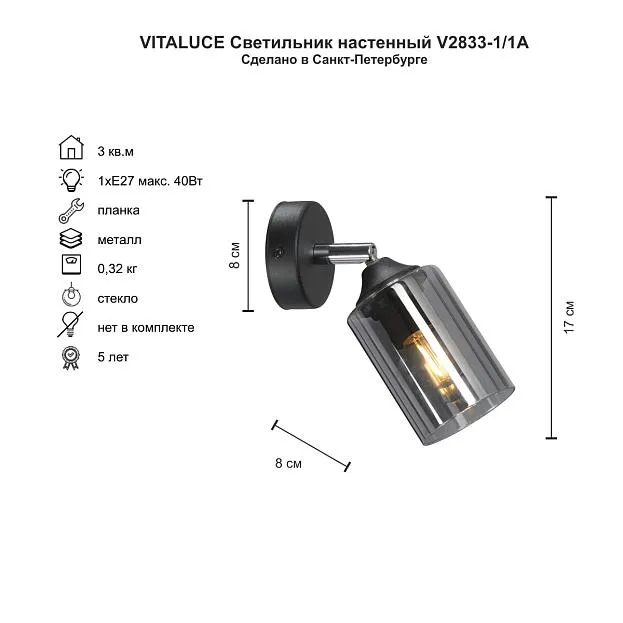 Купить Настенный светильник V2833-1/1A в интернет-магазине ЛюстраНаДом со скидкой и кешбеком. Работаем с НДС, доставляем на дом и в ПВЗ. Продажа Vitaluce V2833-1/1A осуществляется с доставкой по Москве и регионам России.