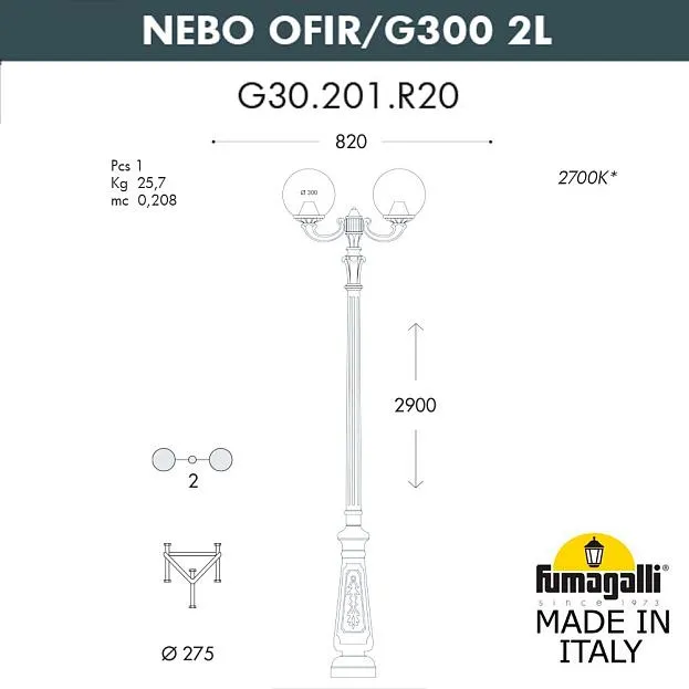 Купить Парковый фонарь FUMAGALLI NEBO OFIR/G300 2L G30.202.R20.AYE27 Черный в интернет-магазине ЛюстраНаДом со скидкой и кешбеком. Работаем с НДС, доставляем на дом и в ПВЗ. Продажа Fumagalli G30.202.R20.AYE27 GLOBE 300 осуществляется с доставкой по Москве и регионам России бесплатно от 5000 р.