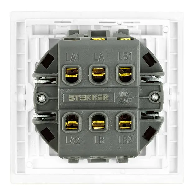 | Название | Переключатель перекрестный 1-клавишный (механизм), STEKKER, 250В, 10А, серия Мия, RSW10-3110-01, белая магнолия |