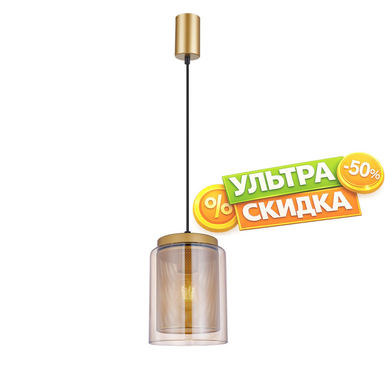 | Описание светильника | Металлически каркас золотого цвета, золотая сетка внутри стеклянного прозрачного плафона, цоколь E27, регулируемая высота. |