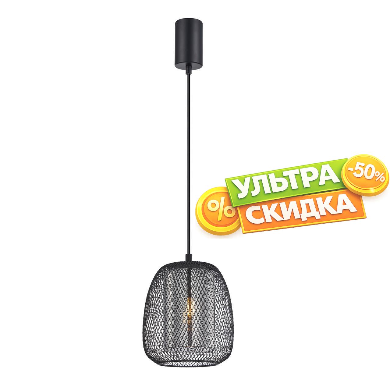 | Описание светильника | Металлически каркас черного цвета, стеклянный прозрачный плафон внутри черной металлической сетки, цоколь E27, регулируемая высота. |
