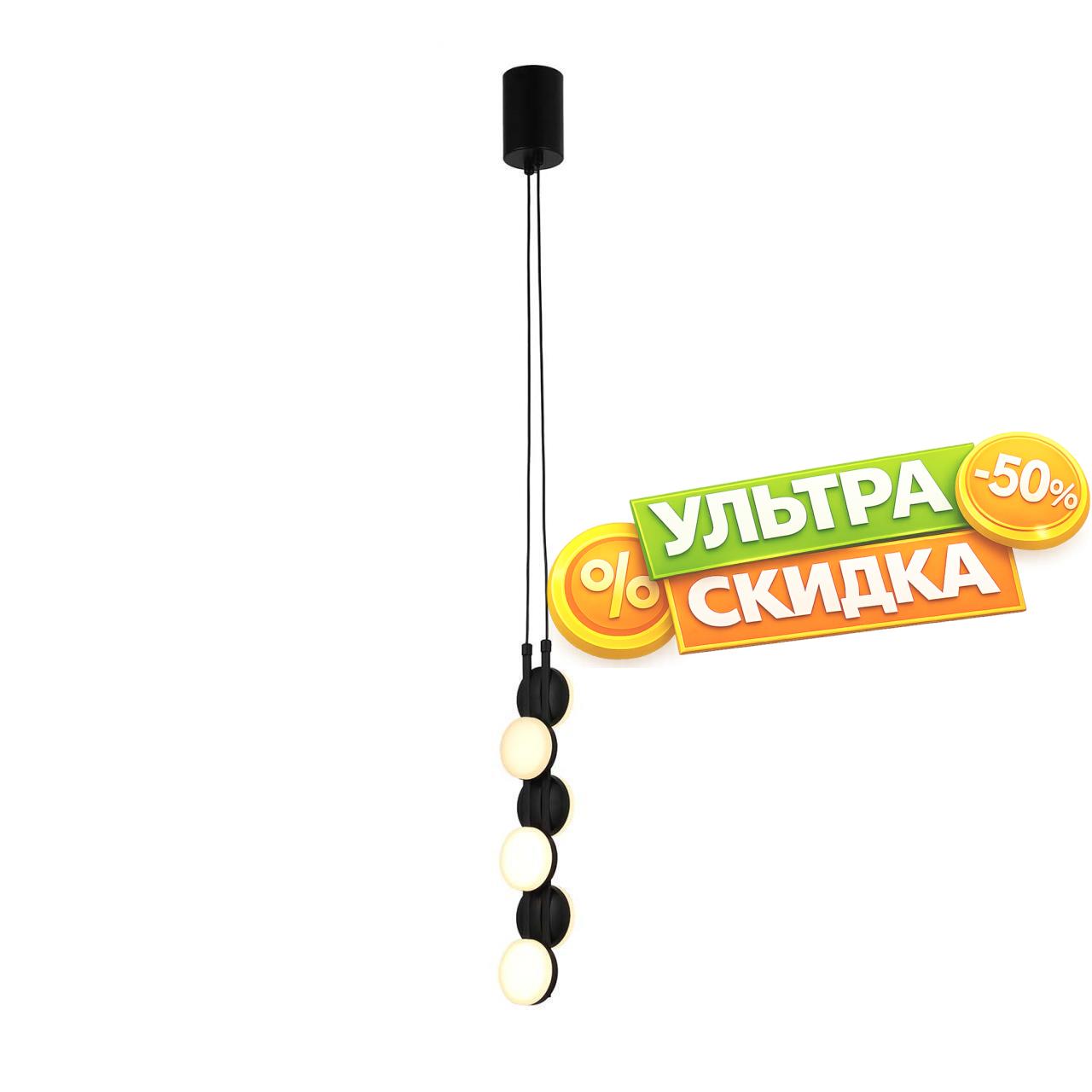| Описание светильника | Каркас из металла черного матового цвета, круглые плоские плафоны белого цвета с акриловым рассеивателем, LEDмодуль. |