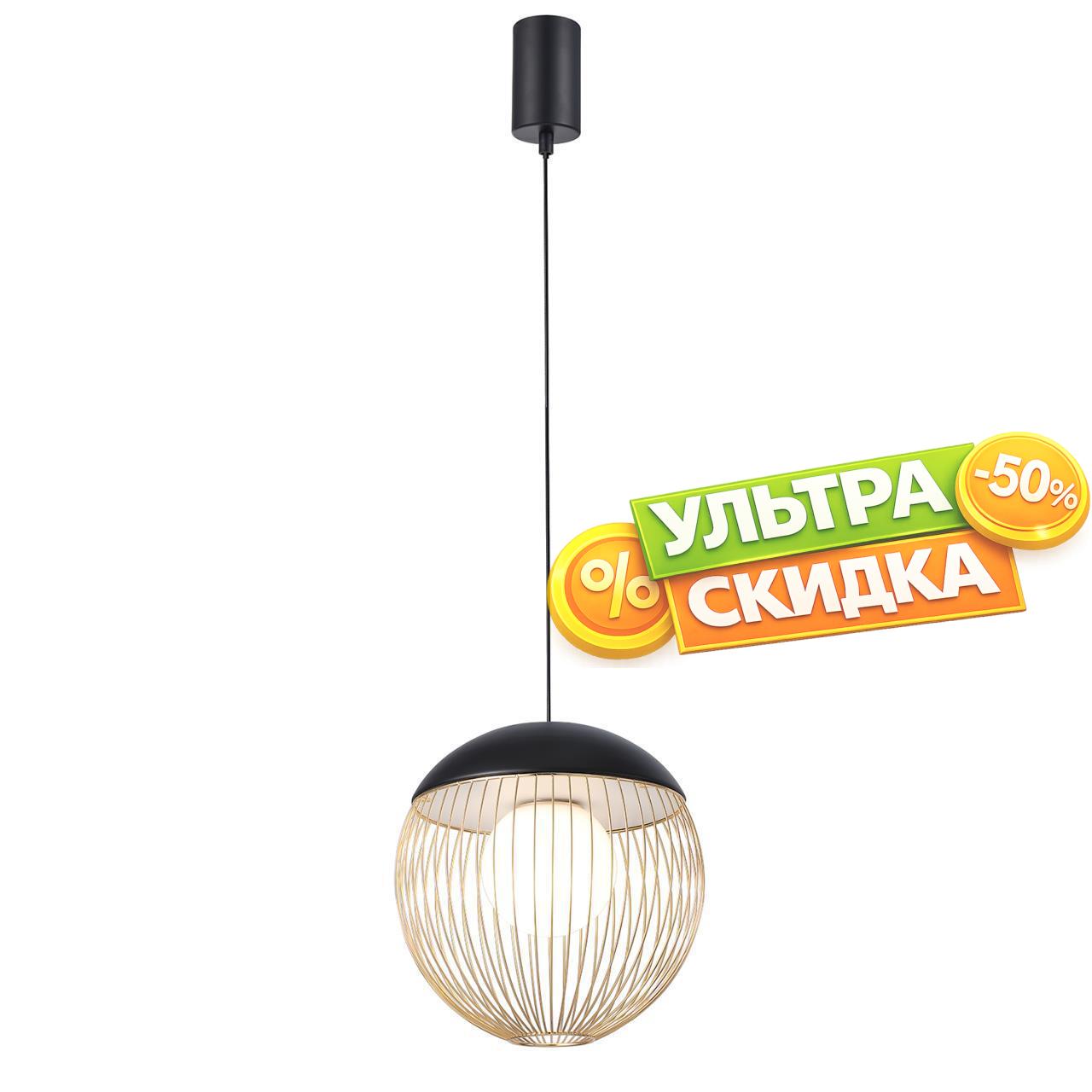 | Описание светильника | Подвес диаметром 30 см, стеклянный выдувной плафон заключен в проволочный каркас из тонких, спаянных между собой металлических трубочек, каркас в черном цвете с золотым, модуль LED, регулируемая высота. |