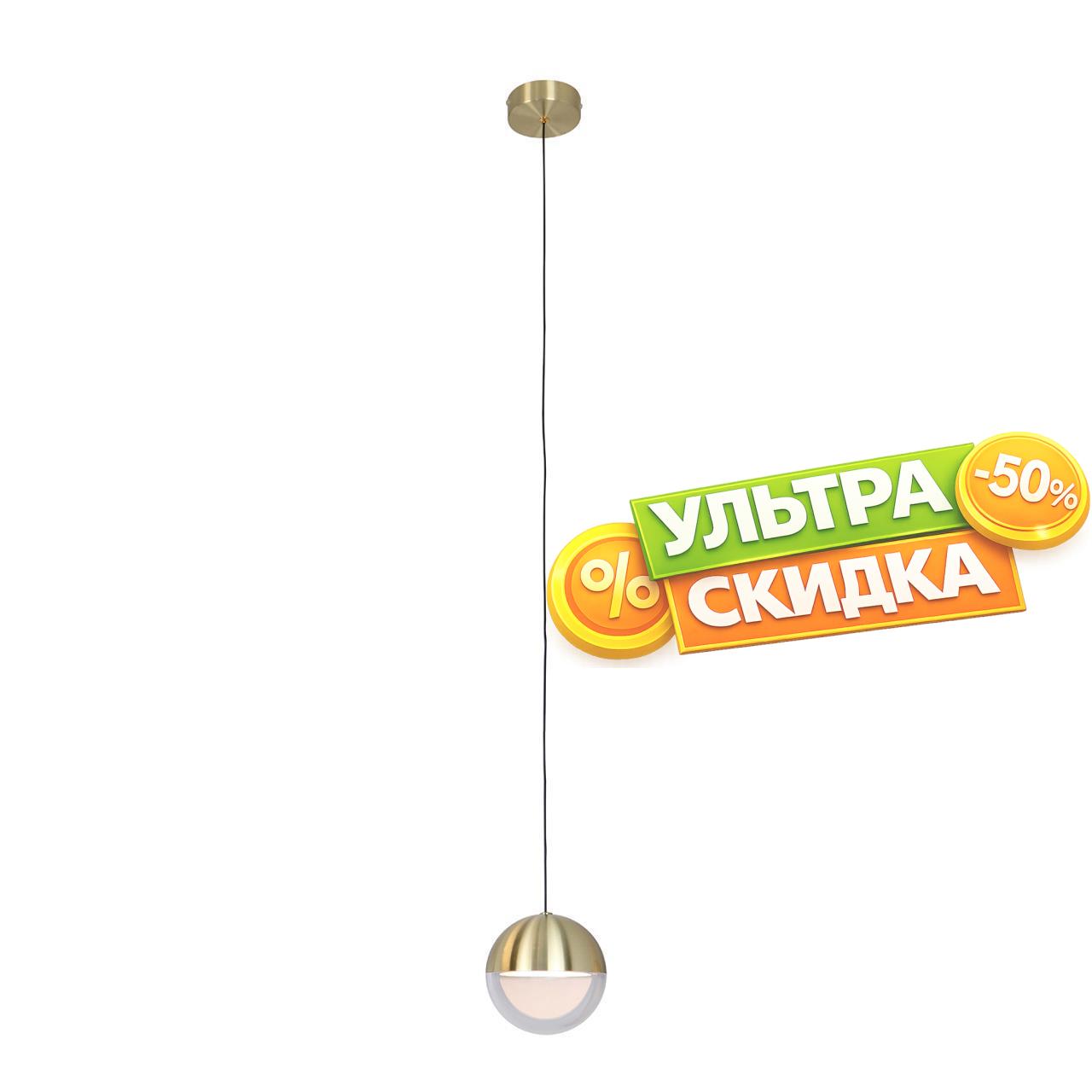 | Описание светильника | Подвес с каркасом в золотом цвете, с шарообразным плафоном, разделенным на две части — металлическую и акриловую, в центре плафона расположен LEDмодуль, создающий оригинальный световой эффект, регулируемая высота. |