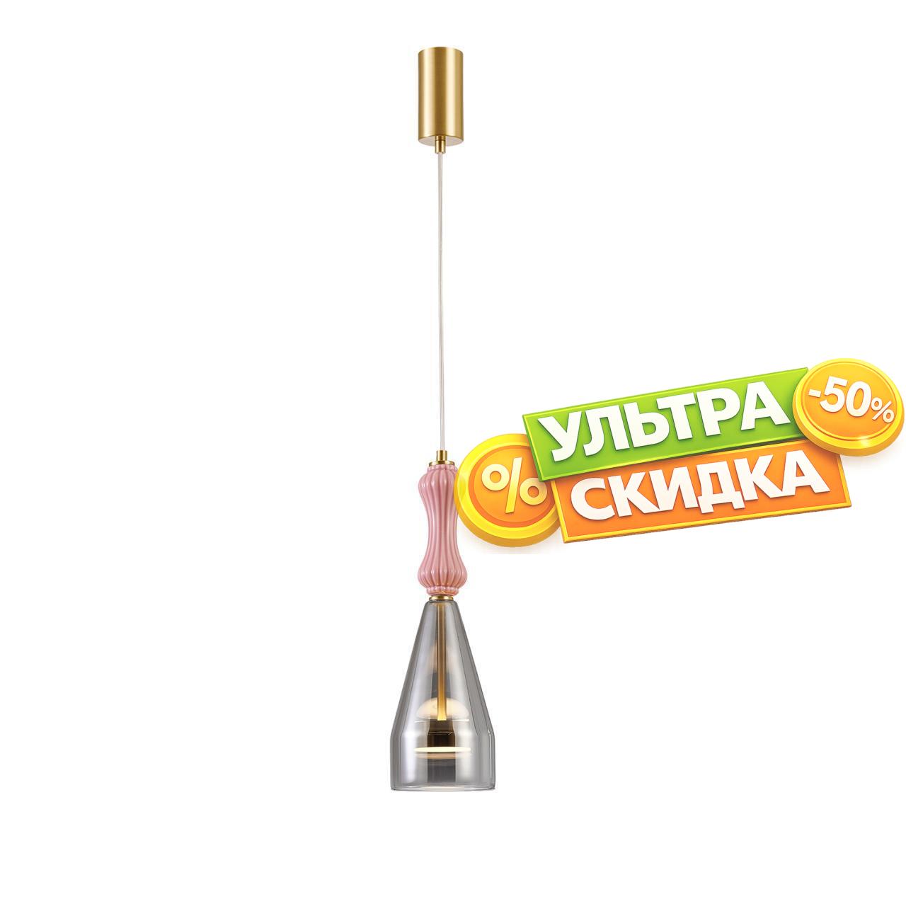 | Описание светильника | Металлический каркас золотого цвета, плафон с градиентным переходом из прозрачного в дымчатосерый цвет, изготовлен из выдувного стекла, декорирован керамическими глазурованными элементами, встроенный модуль LED, регулируемая высота. |