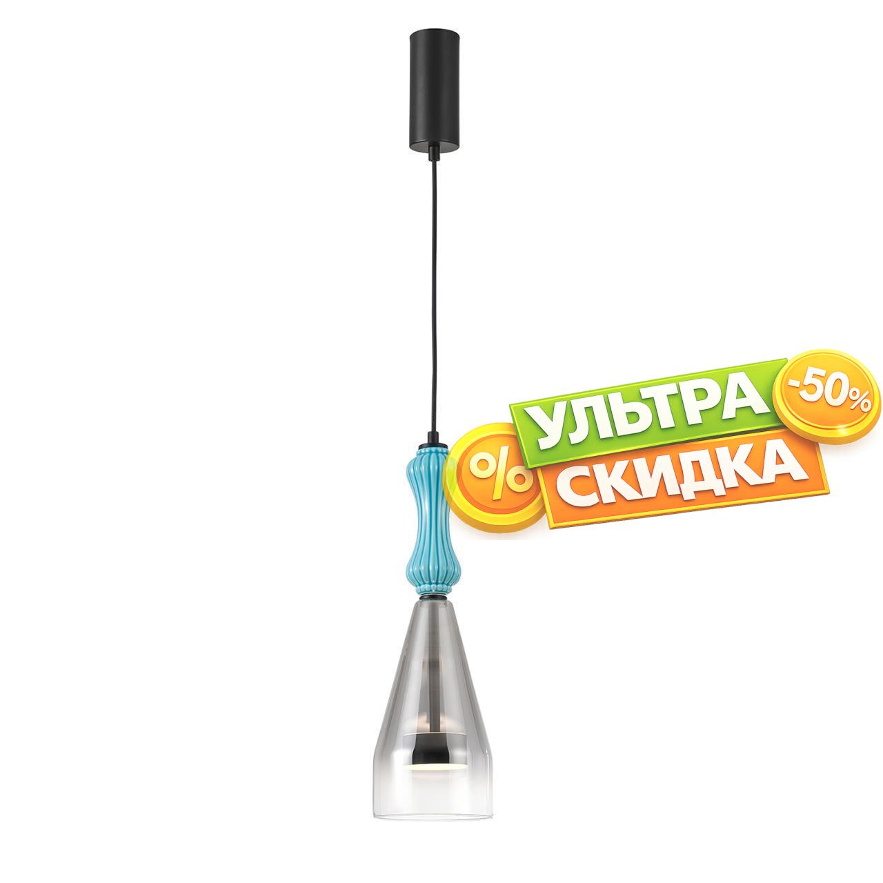 | Описание светильника | Металлический каркас черного цвета, плафон с градиентным переходом из прозрачного в дымчатосерый цвет, изготовлен из выдувного стекла, декорирован керамическими глазурованными элементами, встроенный модуль LED, регулируемая высота. |