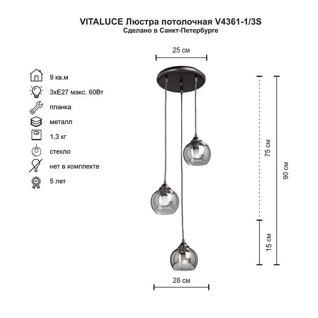 Купить Подвес Vitaluce V4361-1/3S в интернет-магазине ЛюстраНаДом со скидкой и кешбеком. Работаем с НДС, доставляем на дом и в ПВЗ. Продажа Vitaluce V4361-1/3S V4361 осуществляется с доставкой по Москве и регионам России.