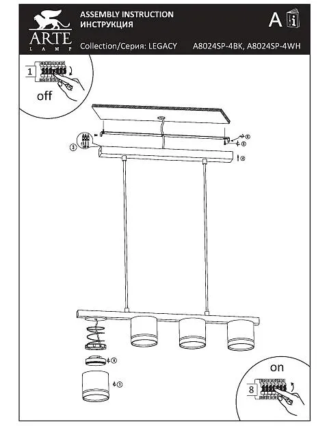 Купить Подвесная люстра Arte Lamp LEGACY A8024SP-4WH в интернет-магазине ЛюстраНаДом со скидкой и кешбеком. Работаем с НДС, доставляем на дом и в ПВЗ. Продажа Arte Lamp A8024SP-4WH LEGACY осуществляется с доставкой по Москве и регионам России бесплатно от 5000 р.