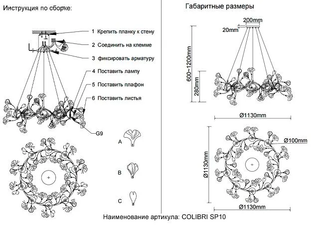 | Особенности модели | COLIBRI - это великолепная коллекция светильников, вдохновленная стилем флористика. Эта коллекция является идеальным сочетанием элегантности и природной красоты.Каждый светильник из коллекции COLIBRI создан с любовью и вниманием к деталям. Они изготовлены из высококачественных материалов, которые придают им прочность и долговечность. Каждый элемент светильника тщательно подобран, чтобы создать уникальный дизайн, напоминающий цветущий сад. |