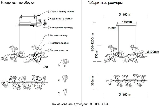 | Особенности модели | COLIBRI - это великолепная коллекция светильников, вдохновленная стилем флористика. Эта коллекция является идеальным сочетанием элегантности и природной красоты.Каждый светильник из коллекции COLIBRI создан с любовью и вниманием к деталям. Они изготовлены из высококачественных материалов, которые придают им прочность и долговечность. Каждый элемент светильника тщательно подобран, чтобы создать уникальный дизайн, напоминающий цветущий сад. |