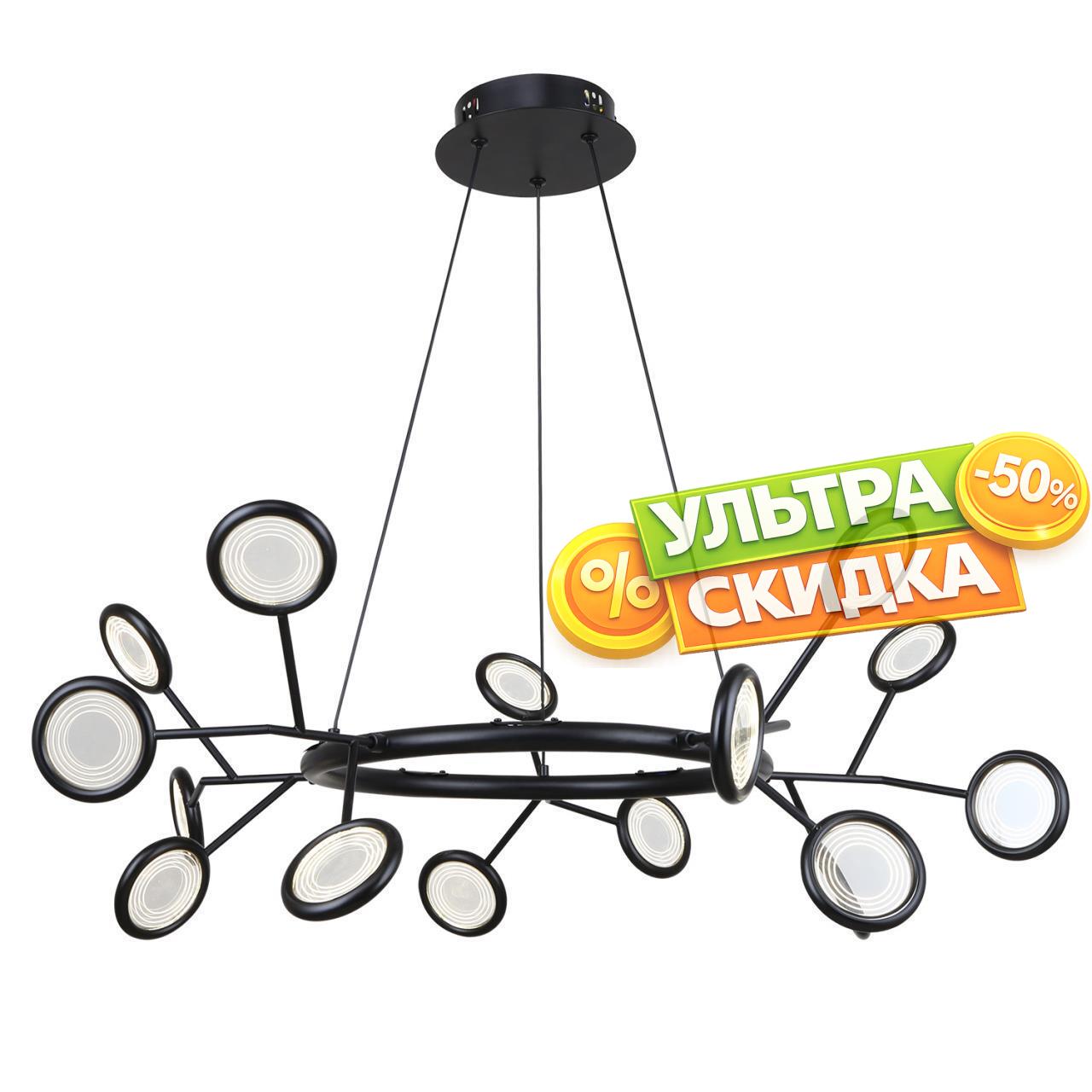 | Описание светильника | Металлический каркас матового черного цвета, внутренний периметр плафонов подсвечен лентойLED, рассеиватель из акрила с нанесенным на него круговым узором, регулируемая высота. |