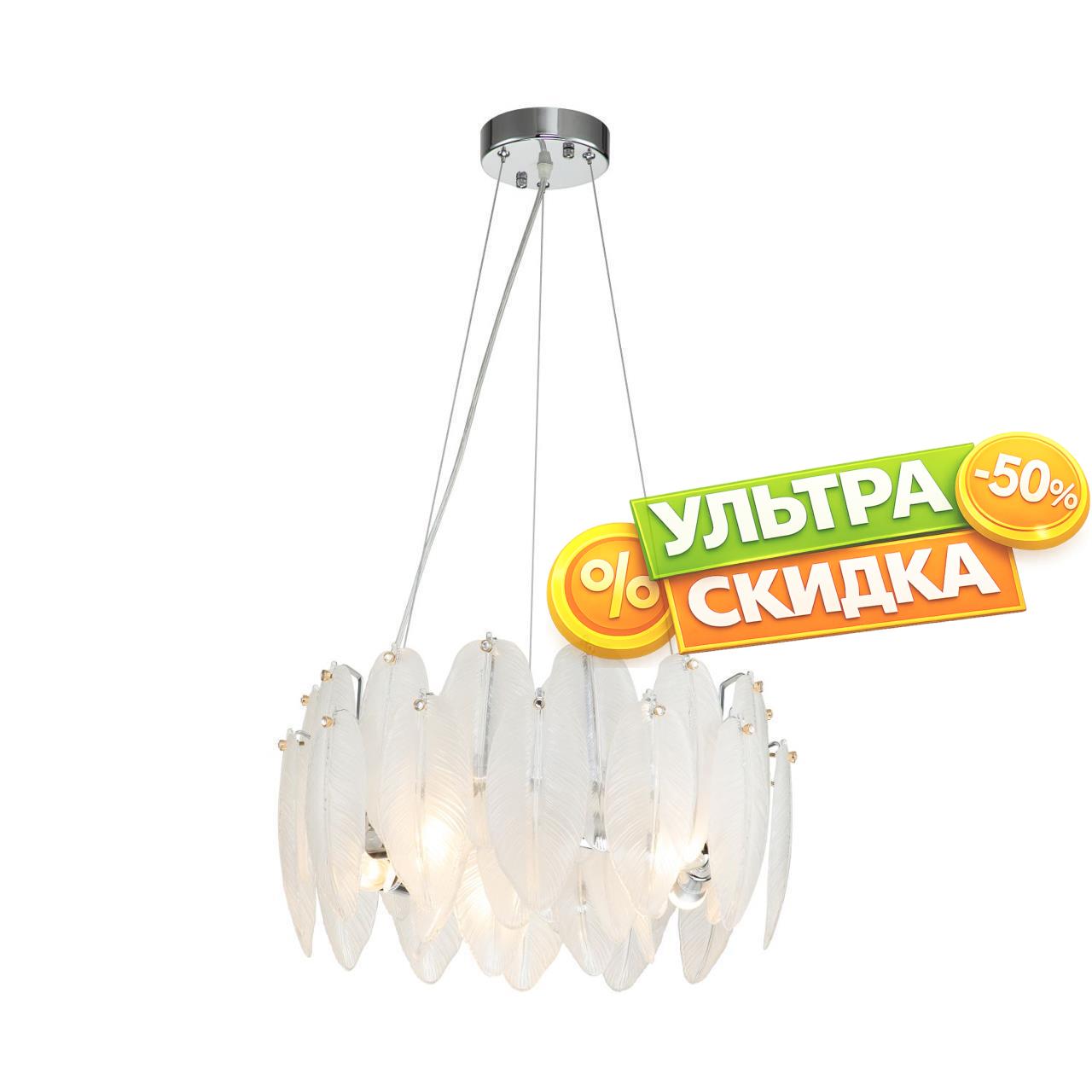 | Описание светильника | Каркас цвета хром, лепестки из полупрозрачного стекла, декор в виде кристалла в золотом обрамлении на каждом лепестке. |