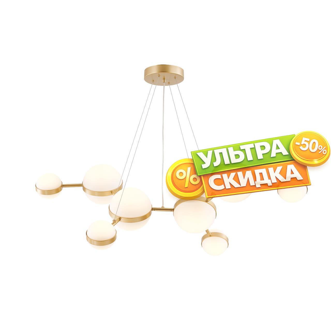 | Описание светильника | Металлический каркас в цвете матовое золото с шестью шаровидными плафонами разных размеров, LEDмодули, регулируемая высота. |