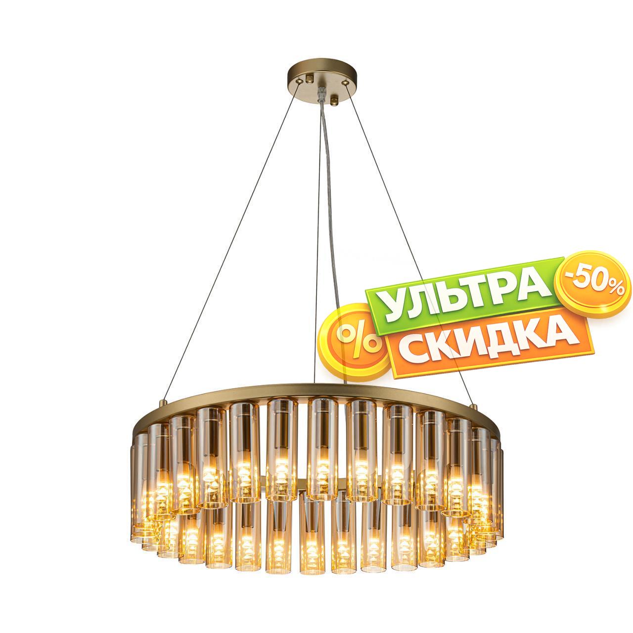 | Описание светильника | Металлический каркас в цвете латунь, плафоны из стекла янтарного цвета цилиндрической формы. Сменные лампы G9. Универсальные крепление позволяют создавать конструкцию из нескольких колец. |