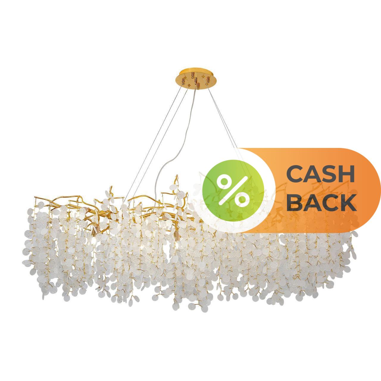 | Описание светильника | Металлический каркас покрыт золотом гальваническим способом, декор из прозрачного и белого матового стекла, лампы E14 можно менять. |