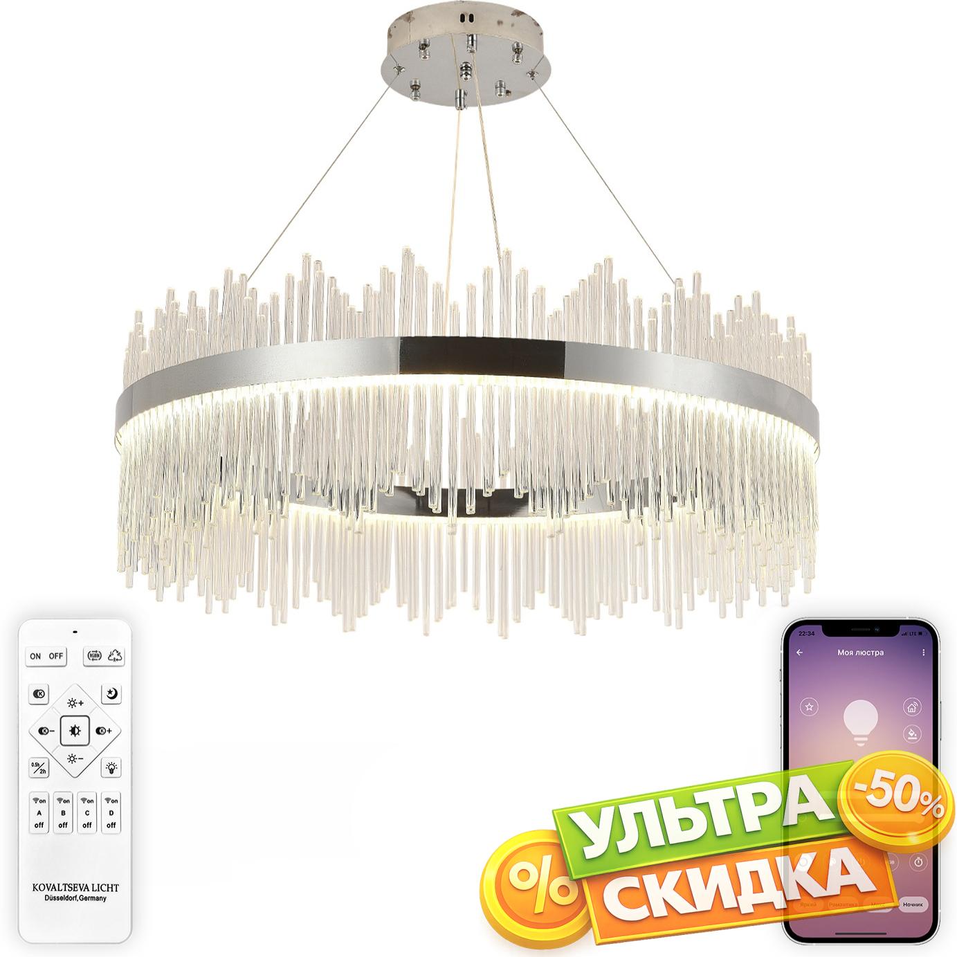 Купить Подвесная люстра светодиодная нимб с пультом ДУ, моб. приложением 160W, хром, LED Natali Kovaltseva INNOVATION STYLE 83161 в интернет-магазине ЛюстраНаДом со скидкой и кешбеком. Работаем с НДС, доставляем на дом и в ПВЗ. Продажа Natali Kovaltseva INNOVATION STYLE 83161 осуществляется с доставкой по Москве и регионам России бесплатно от 5000 р.